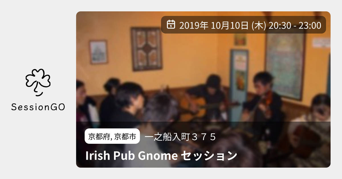 京都府, 京都市一之船入町375Irish Pub Gnome セッション2019年10月10日(木)終了11:30 - 14:00京都府京都市中京区河原町通二条下る東入一之船入町375主催者:熊本・尾崎🔰 初心者歓迎第二木曜日セッションイベント内容をコピーして新規投稿※閉店・移転などにより、正常に表示されない場合があります