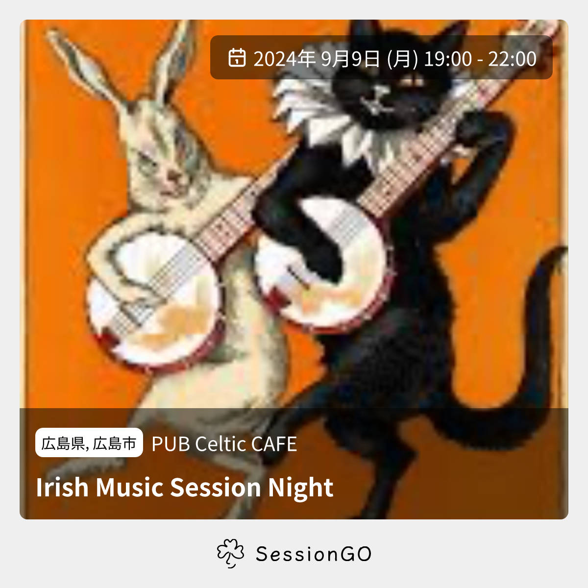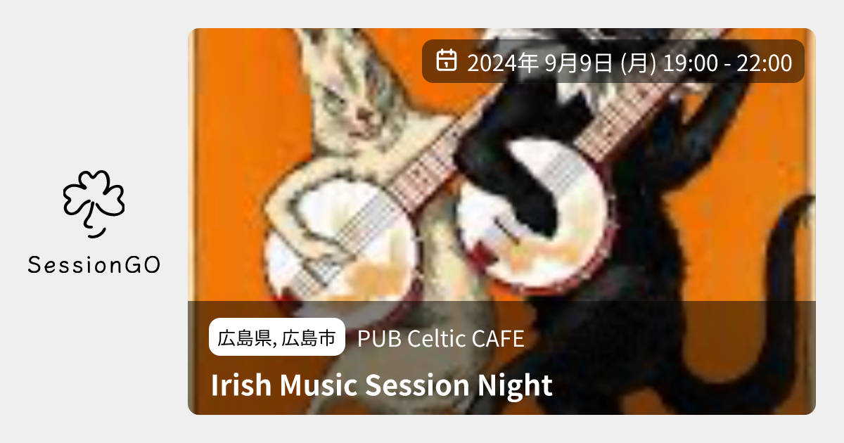 広島県, 広島市PUB Celtic CAFEIrish Music Session Night2024年9月9日(月)終了10:00 - 13:00広島県広島市中区幟町12−6主催者:斗亜(TOA)🙏 投げ銭お願いします関西からCocopelienaさんをお迎えして広島のケルティックカフェにてオープンセッションを行います。 お席に限りがございますので、ご観覧の方は各自お店にご予約ください。 さいとうともこ(Fiddle,Concertina) 岩浅翔(Banjo,Irish Flute,Tin Whistle) 山本宏史(Guiter) 藤岡竜輔(Banjo,Irish Flute) 斗亜(Fiddle) ジェイソン・スコット (Contrabass) イベント内容をコピーして新規投稿※閉店・移転などにより、正常に表示されない場合があります