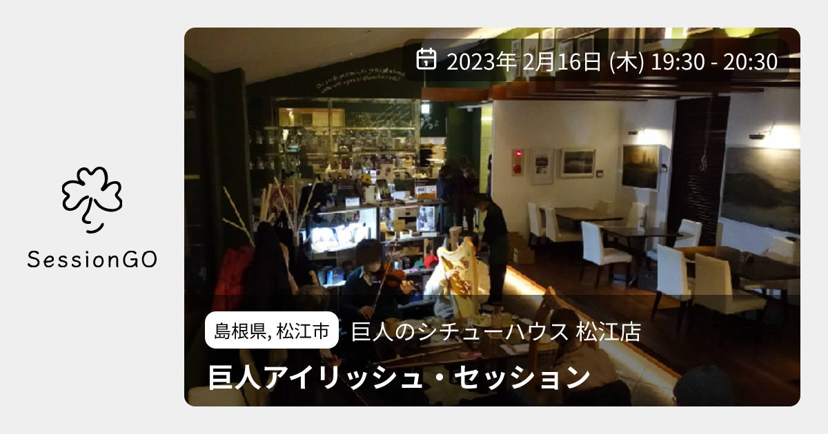 山陰日本アイルランド協会主催のアイルランド伝統音楽セッションです。アイルランドの家庭料理を召し上がりながら、アイリッシュ音楽の演奏をお楽しみください。