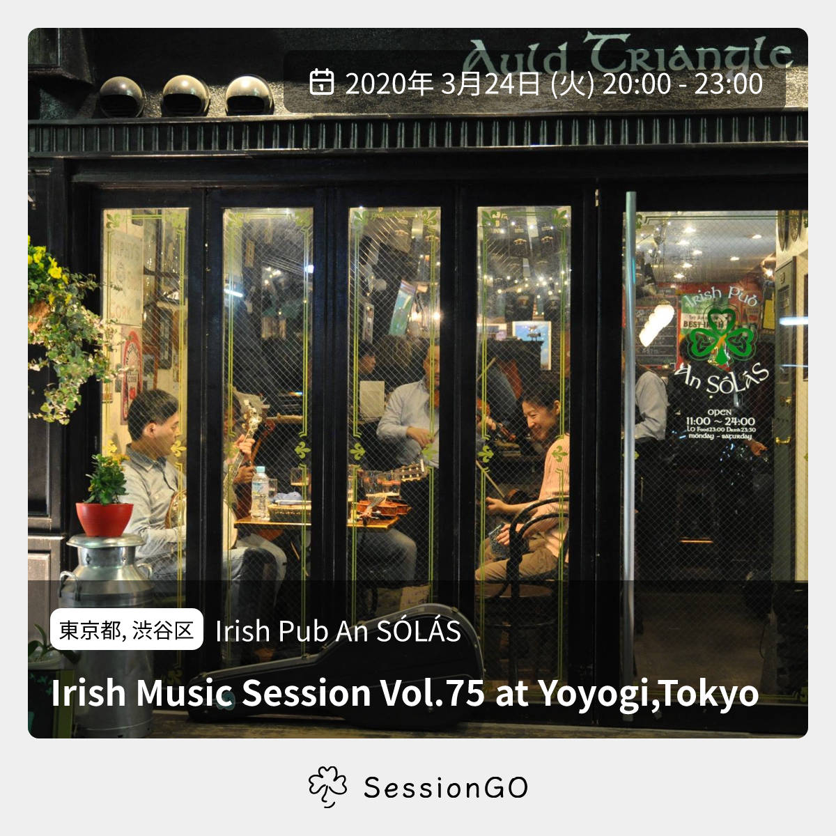 2026/3/24(火)10:00-13:00Irish Music Session Vol.171 at Yoyogi Tokyo東京渋谷区Irish Pub An SÓLÁS アイリッシュパブ アン ソラス