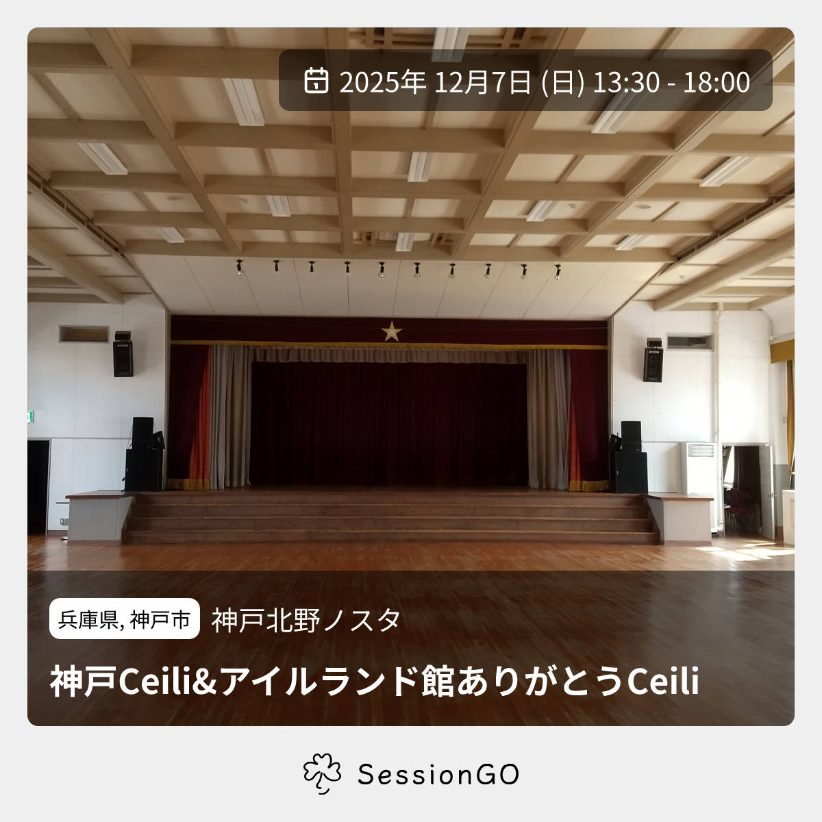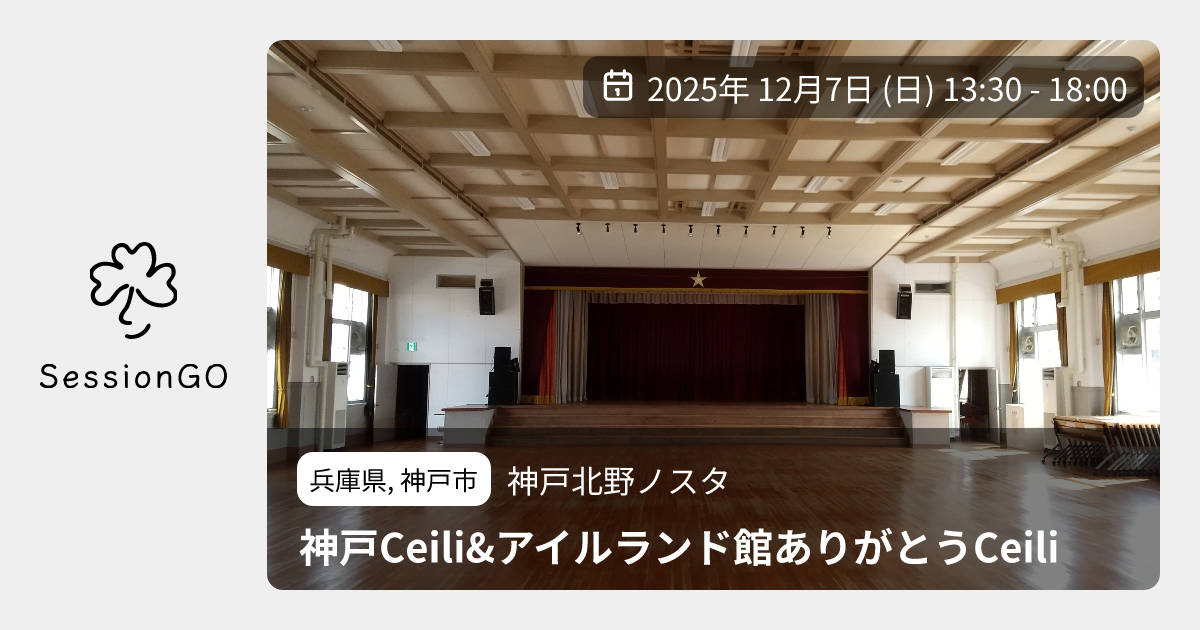 兵庫県, 神戸市神戸北野ノスタ神戸Ceili&アイルランド館ありがとうCeili2025年12月7日(日)終了4:30 - 9:00兵庫県神戸市中央区中山手通3丁目17−1主催者:Mt.Rokko Ceili Band🙋♀️ 事前申し込みが必要🔰 初心者歓迎🧑🏫 ワークショップ💰 参加・チャージ料金が必要12月7日(日)「神戸ケーリー&アイルランド館ありがとうケーリー」を開催します。 神戸トアロード沿いの小学校跡地をリノベーションした素敵な会場にて ダンスに興味のある方には初心者向けワークショップもあり。 また、会場付近に神戸の観光地もたくさんあります。 Mt.Rokko Ceili Bandの伴奏で踊りましょう! https://kansai-irish-dancers.my.canva.site/?fbclid=IwdGRjcAOSrRJjbGNrA5KtAmV4dG4DYWVtAjExAHNydGMGYXBwX2lkDDM1MDY4NTUzMTcyOAABHqjNIGZcTStShI774cVrIigvUvwgG5nbPATCcC9qJ07O2Pcp-siVTbjn5Pts_aem_vIgGS2BboLVhNkdhNKZEeQイベント内容をコピーして新規投稿※閉店・移転などにより、正常に表示されない場合があります