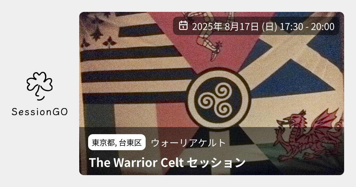 東京都, 台東区ウォーリアケルトThe Warrior Celt セッション2025年8月17日(日)終了8:30 - 11:00東京都台東区上野6丁目9−22 3F定期セッションです。イベント内容をコピーして新規投稿※閉店・移転などにより、正常に表示されない場合があります