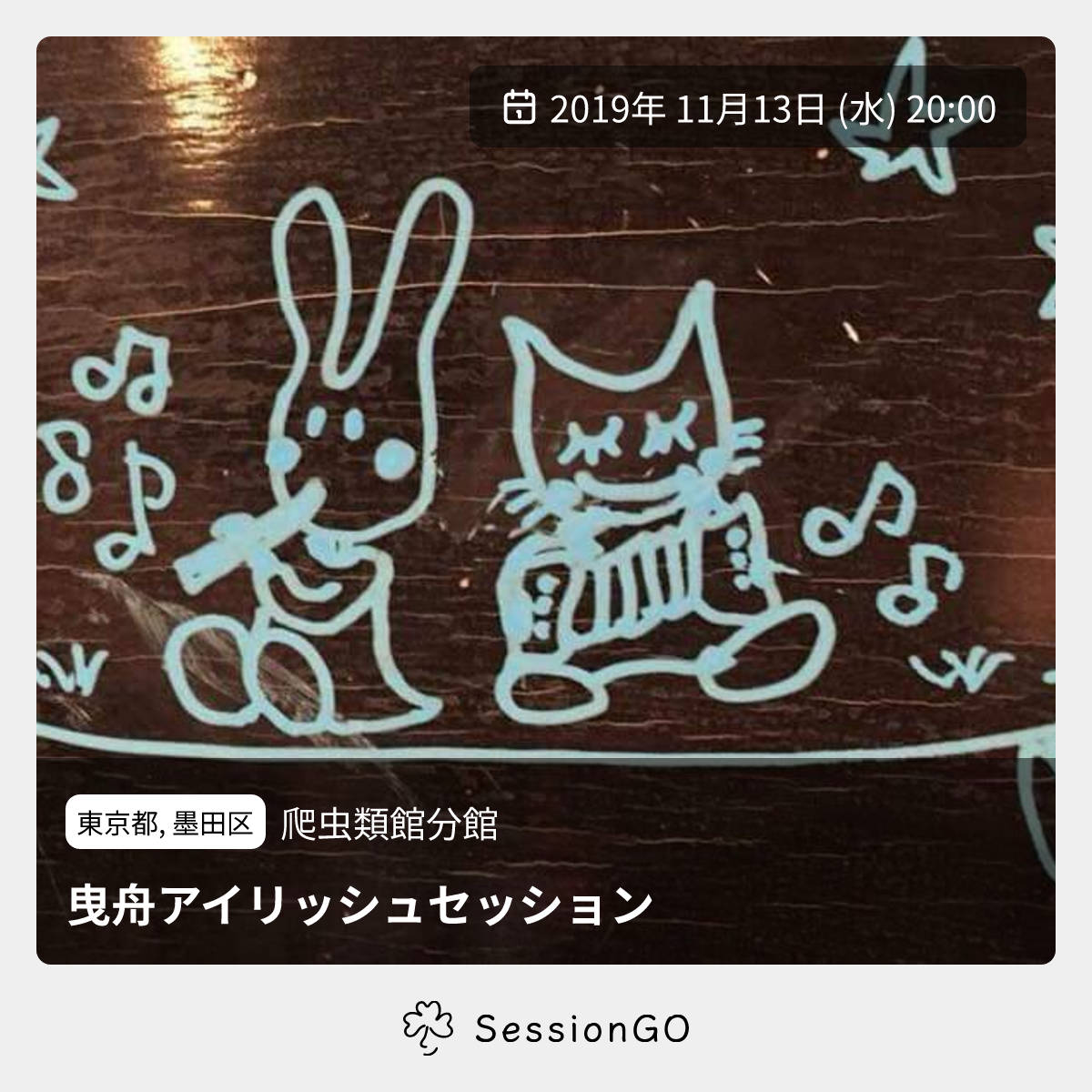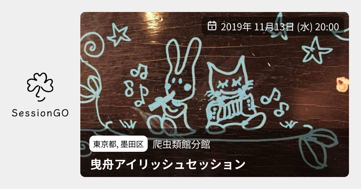 東京都, 墨田区爬虫類館分館曳舟アイリッシュセッション2019年11月13日(水)終了11:00東京都墨田区京島3丁目19−3主催者:たなち/おかちか🔰 初心者歓迎🚭 開催場所が禁煙お店 19時〜 セッション 20時〜 今月はカレーです。イベント内容をコピーして新規投稿※閉店・移転などにより、正常に表示されない場合があります
