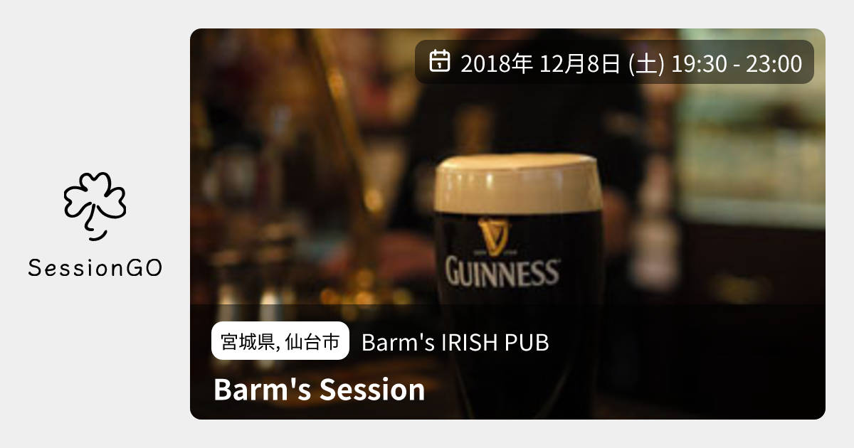 宮城県, 仙台市Barm's IRISH PUBBarm's Session2018年12月8日(土)終了10:30 - 14:00宮城県仙台市青葉区五橋2丁目11−18主催者:TRAD🚭 開催場所が禁煙アイリッシュだけではなく、ケープブレトン、スコティッシュも出るアットホームなSessionです。 元大手ビール醸造責任者のマスターが注ぐGUINNESSが天下一品!自家製スモークはどんなお酒にも合います。まずはお気軽に聴きに、飲みにお越し下さい。イベント内容をコピーして新規投稿※閉店・移転などにより、正常に表示されない場合があります