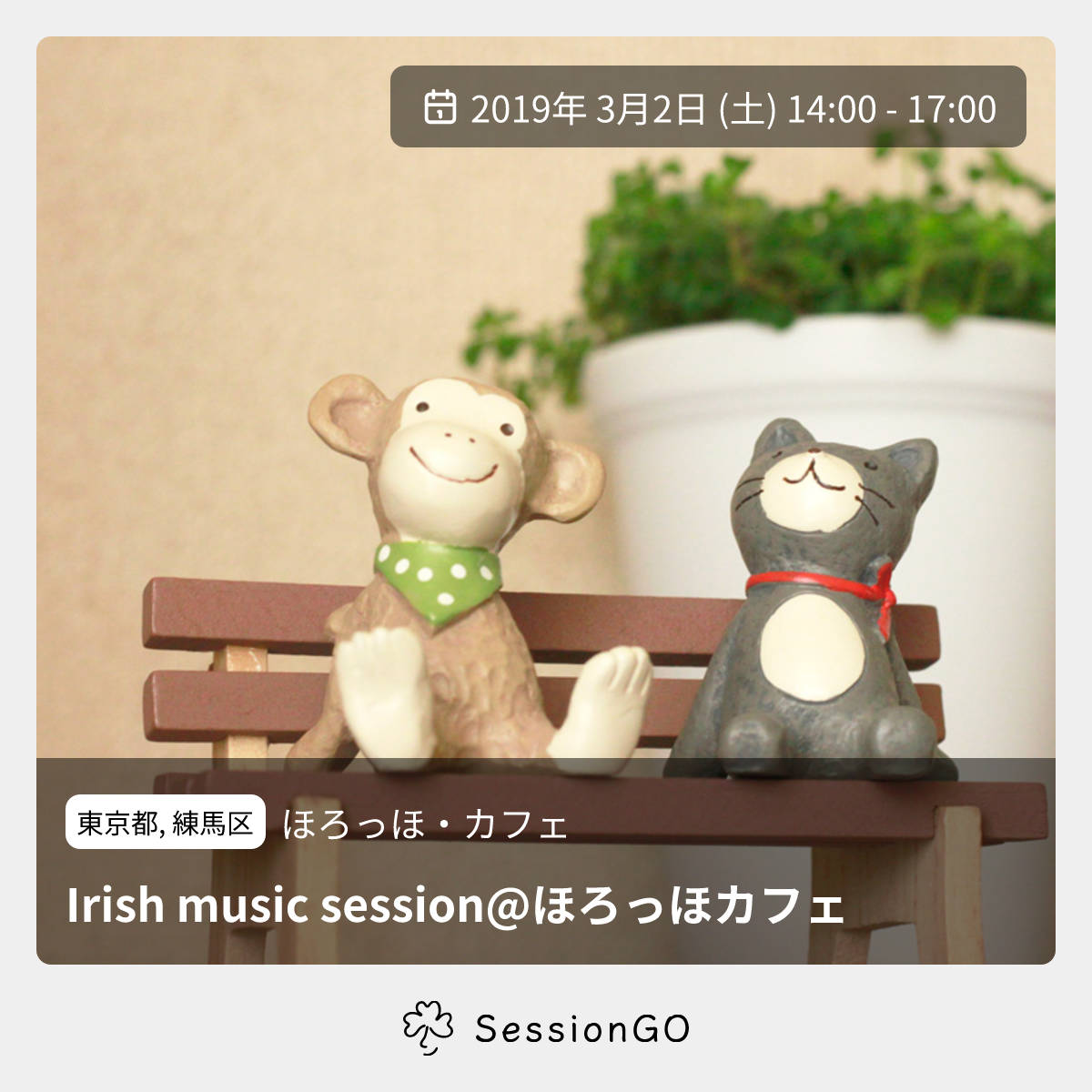 東京都, 練馬区ほろっほ・カフェIrish music session@ほろっほカフェ2019年3月2日(土)終了5:00 - 8:00東京都練馬区小竹町1丁目36−1主催者:吉田拓人、池田幸平🔰 初心者歓迎🚭 開催場所が禁煙第2回江古田セッションです。 2回目は今勢いのある池田くんとやります。 お気軽にご参加ください。 ※食べ物飲み物持ち込み制、会場使用料各1000円です。 ホスト: ・吉田 拓人(フィドル、コンサティーナ) ・池田 幸平(コンサティーナ)イベント内容をコピーして新規投稿※閉店・移転などにより、正常に表示されない場合があります