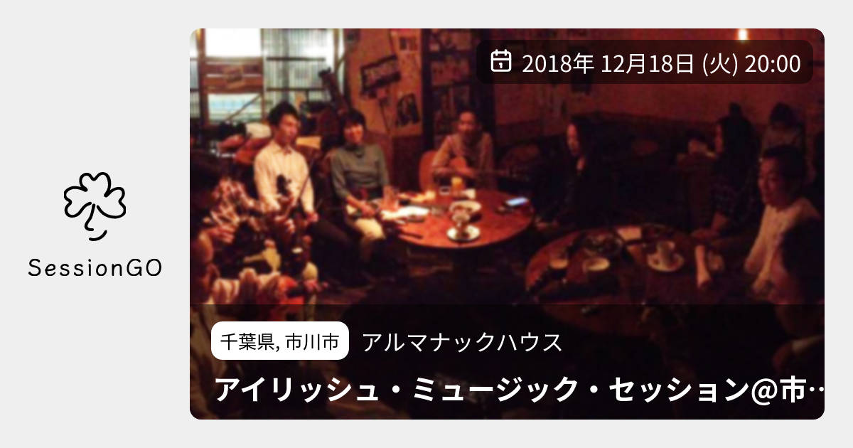 千葉県, 市川市アルマナックハウスアイリッシュ・ミュージック・セッション@市川2018年12月18日(火)終了11:00千葉県市川市新田5丁目5−28主催者:豊田 耕三(Irish Flute & Whistles)/ 武田 良平(Bouzouki & Vocal)🔰 初心者歓迎アイリッシュ・ミュージックのオープン・セッション。 ホスト 豊田 耕三(Irish Flute & Whistles) 武田 良平(Bouzouki & Vocal) ※普通のアイリッシュ・パブと違ってミュージシャンもテーブルチャージ¥300+参加費¥500、計¥800のチャージがかかります。 http://www.h4.dion.ne.jp/~almanac/イベント内容をコピーして新規投稿※閉店・移転などにより、正常に表示されない場合があります