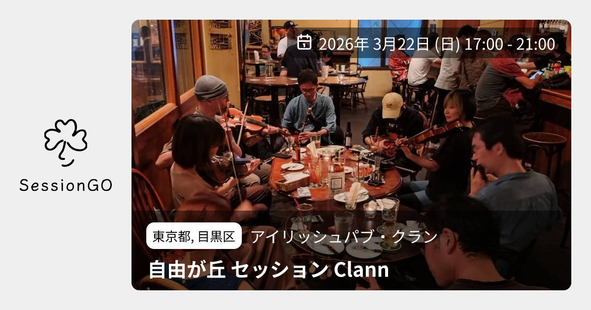 東京都, 目黒区アイリッシュパブ・クラン自由が丘 セッション Clann2026年3月22日(日)8:00 - 12:00東京都目黒区自由が丘1丁目8−8−18主催者:曽武川のえる🔰 初心者歓迎Irish Music Session! 日時:3月22日(日)17:00 場所:CLANN(自由が丘) 東京都目黒区自由が丘1-8-18 ノーブルビル3F (東急東横線・大井町線 自由が丘駅 南口から徒歩2分) (03-3725-9116) https://tabelog.com/tokyo/A1317/A131703/13189406/ お時間のある方は、ぜひお出でください。 ギネスや料理も、美味しいですよ!! #CLANN #自由が丘 #irishmusicsessionイベント内容をコピーして新規投稿※閉店・移転などにより、正常に表示されない場合があります