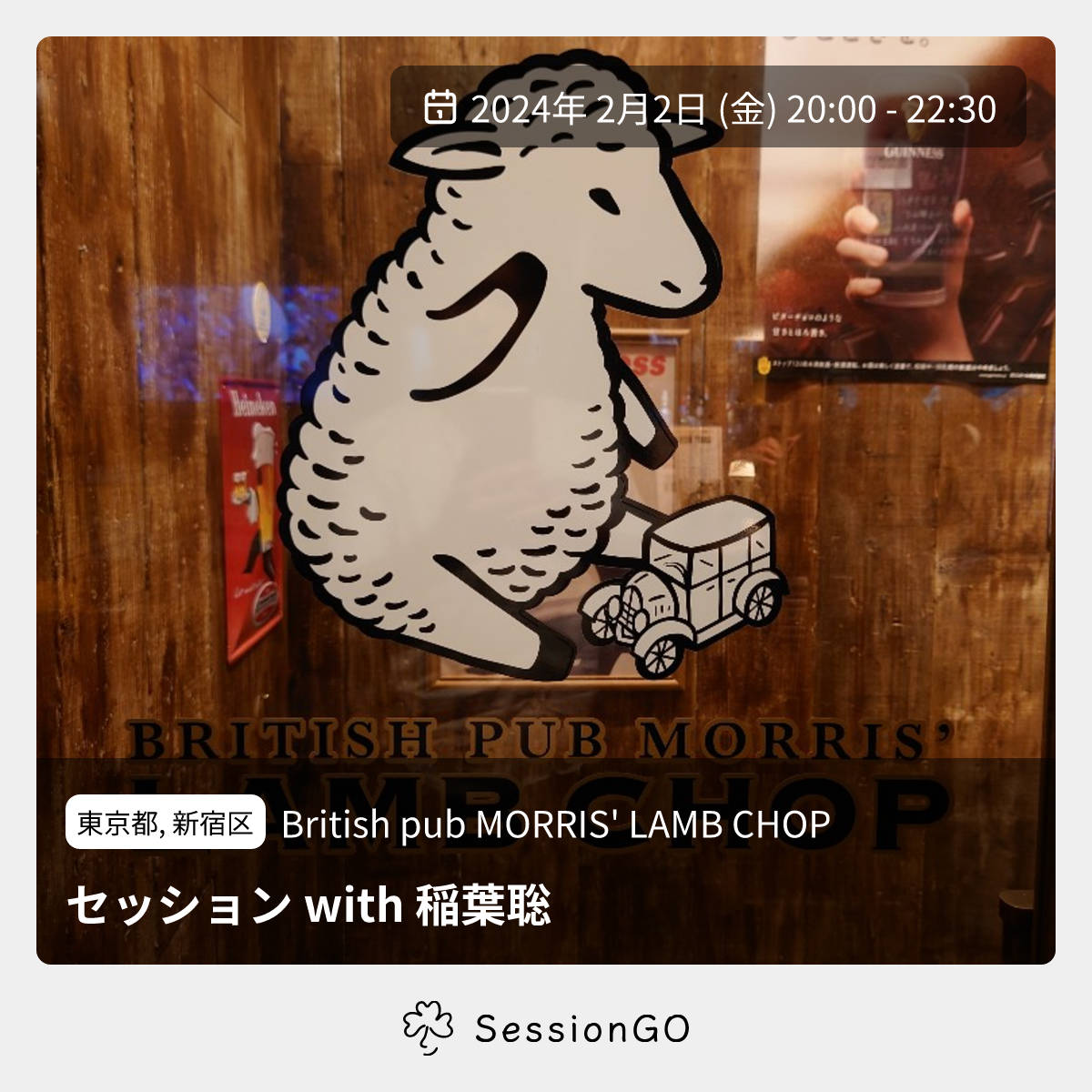 このイベントは終了していますが、同じ場所でこんなイベントも予定されています2026/3/16(月)11:00-13:30セッション with 稲葉聡東京新宿区British pub MORRIS' LAMB CHOP東京都, 新宿区British pub MORRIS' LAMB CHOPセッション with 稲葉聡2024年2月2日(金)終了11:00 - 13:30東京都新宿区新宿3丁目20主催者:稲葉聡🔰 初心者歓迎🚭 開催場所が禁煙新宿の「MORRIS LAMB CHOP」にて アイリッシュトラッドセッション 毎週金曜日20時〜開催 是非お越し下さい。 ※伴奏楽器での参加はお控え下さい。 https://morrislambchop.owst.jp/ イベント内容をコピーして新規投稿※閉店・移転などにより、正常に表示されない場合があります