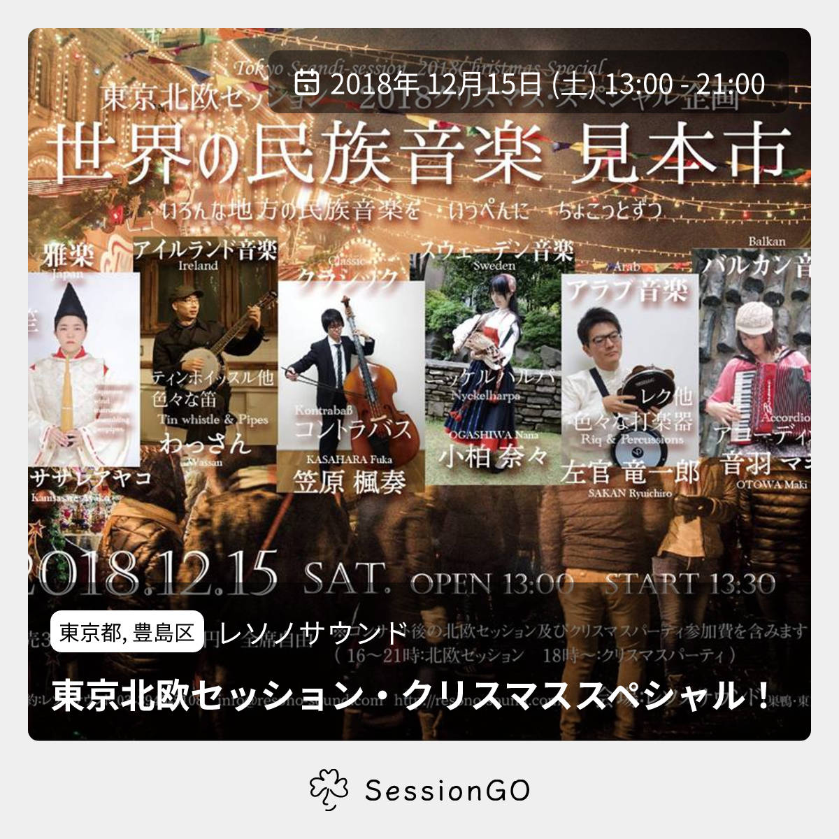 いつものセッションに加え、ライブやクリスマスパーティをやります。みなさん、ぜひご参加ください!!