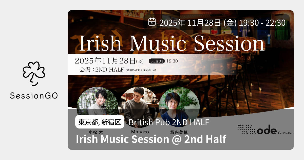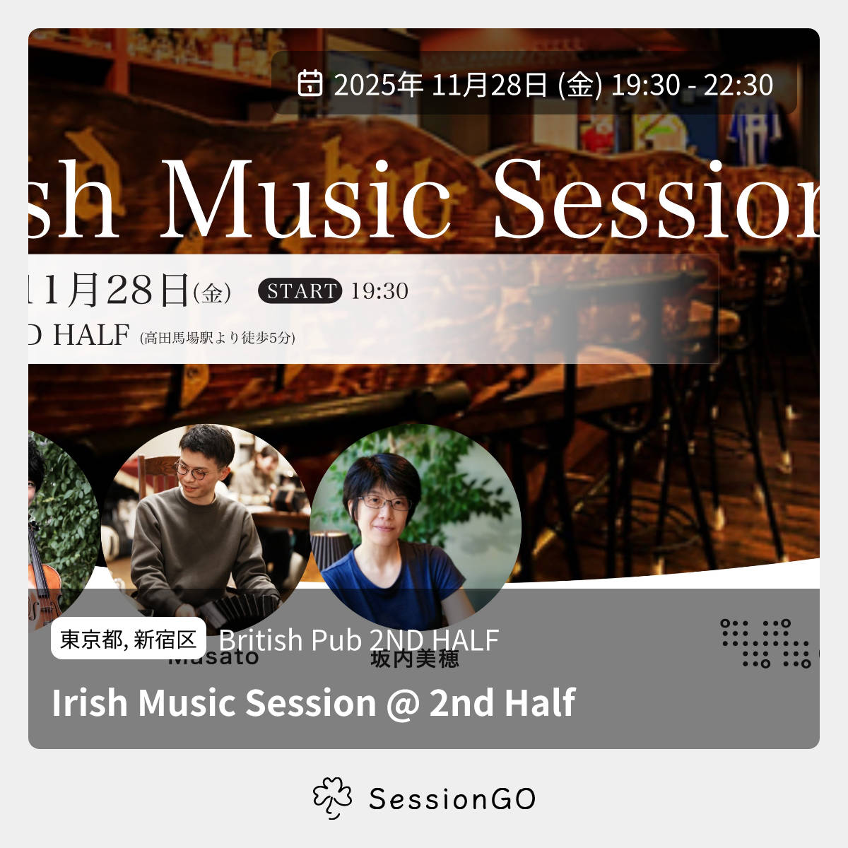 高田馬場駅から歩いてすぐのBritish Pub『2ND Half』でアイリッシュミュージックセッションを開催します!どなたでもご参加いただけるオープンセッションです。楽器を演奏される方も音楽を楽しまれる方もお気軽にお越しください。