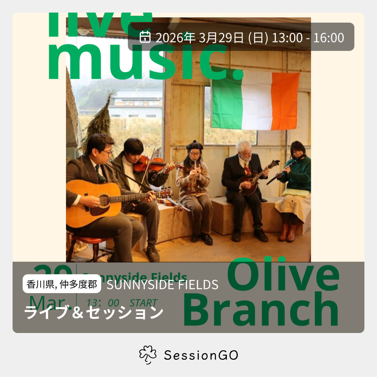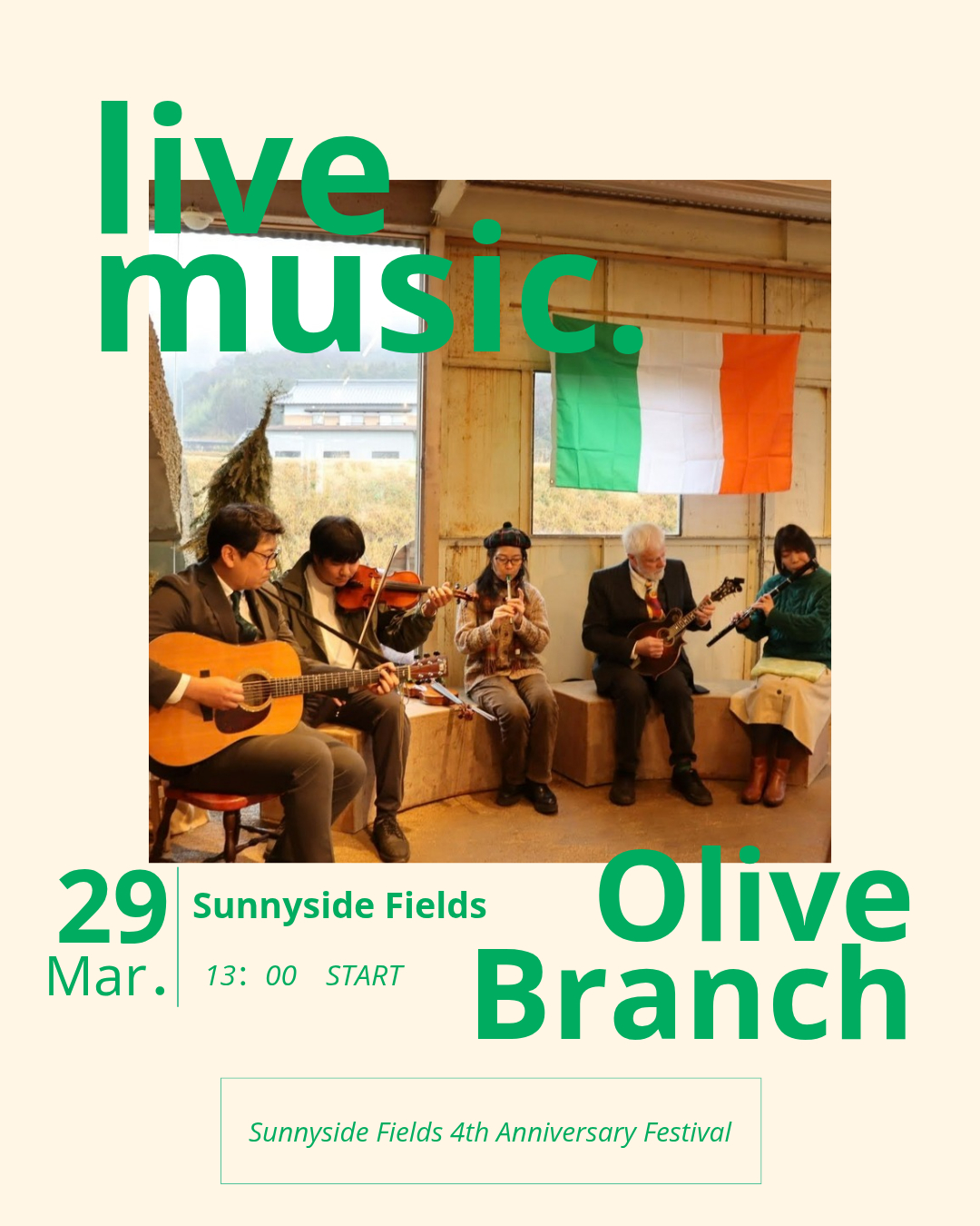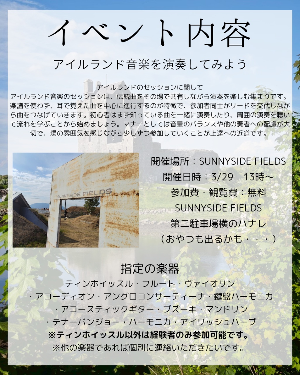 Sunnyside Fields 4周年祭にて、アイルランド音楽のライブを演奏させていただきます🇮🇪