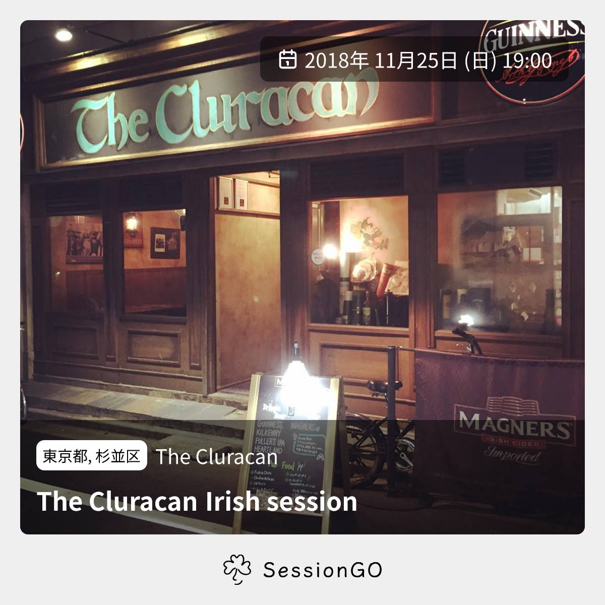東京都, 杉並区The CluracanThe Cluracan Irish session2018年11月25日(日)終了10:00東京都杉並区高円寺南4丁目9−6 第3矢島ビル1F主催者:戸田氏11月25日(日)19時ごろより高円寺のアイリッシュパブThe Cluracan(ザ・クルーラカーン)にてアイルランドの音楽のオープンなセッションをやります。チャージ・参加費等不要(要オーダー)。 杉並区高円寺南4-9-6 第3矢島ビル1F tel.03-5930-1752 https://www.facebook.com/Irish-Pub-The-Cluracan-137550413001819/ よろしくお願いします。イベント内容をコピーして新規投稿※閉店・移転などにより、正常に表示されない場合があります