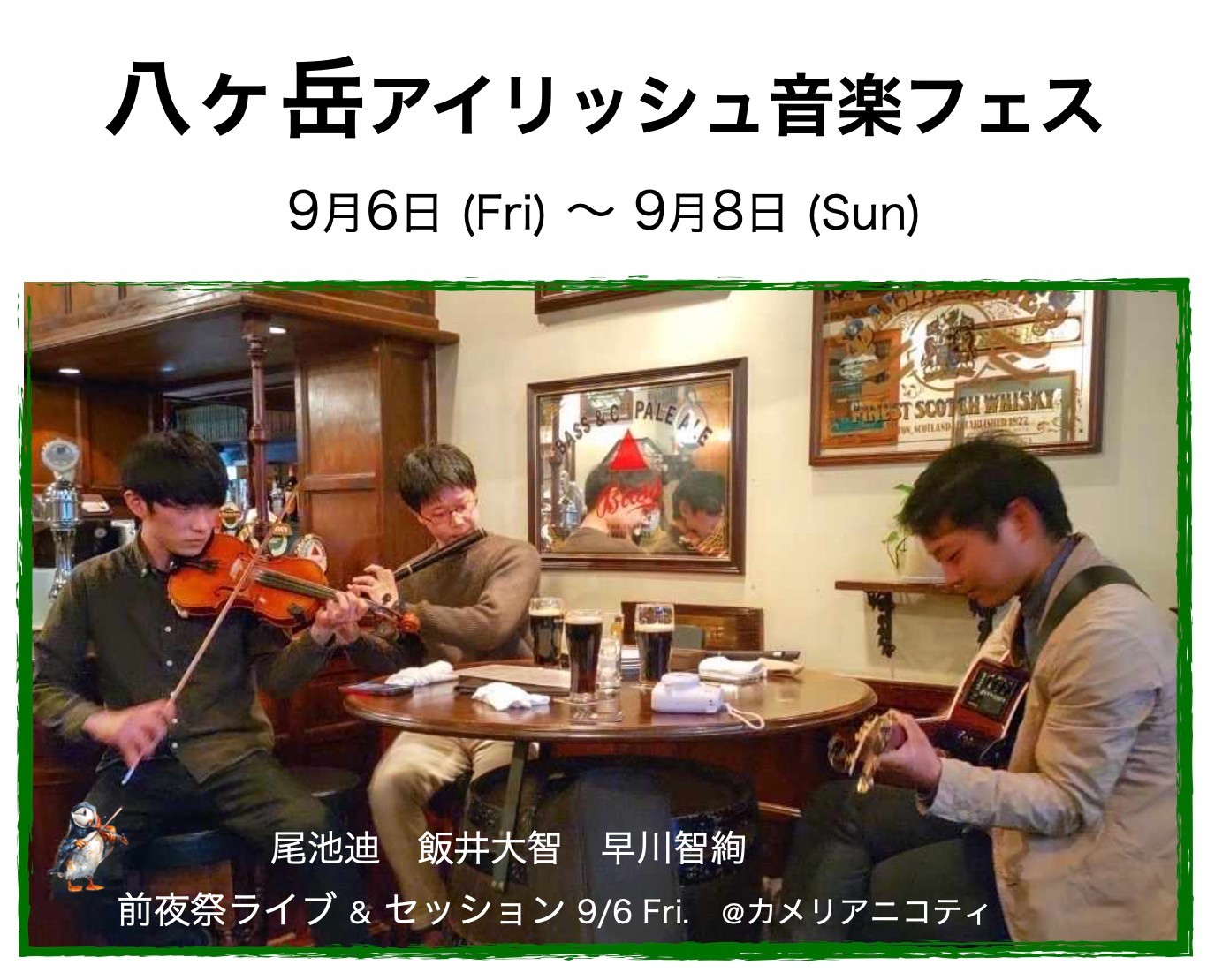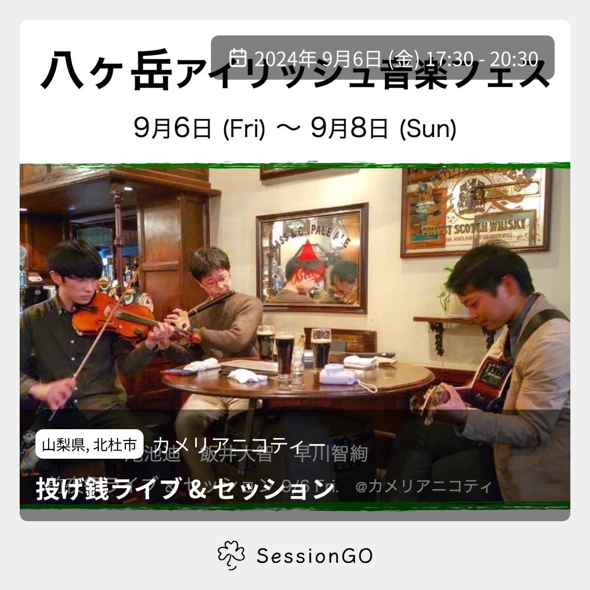 山梨のお隣長野県から、アイリッシュ音楽を愛してやまない3人が来てくれます。