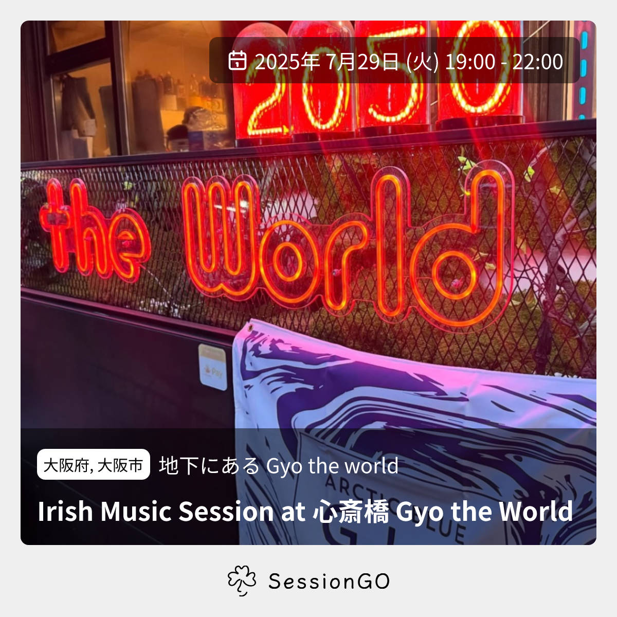 心斎橋Gyo the Worldにて月一火曜日開催のセッションです。19:00〜22:00 チャージなし