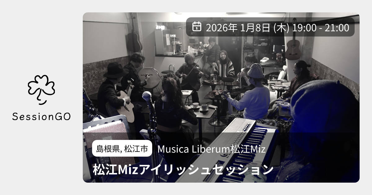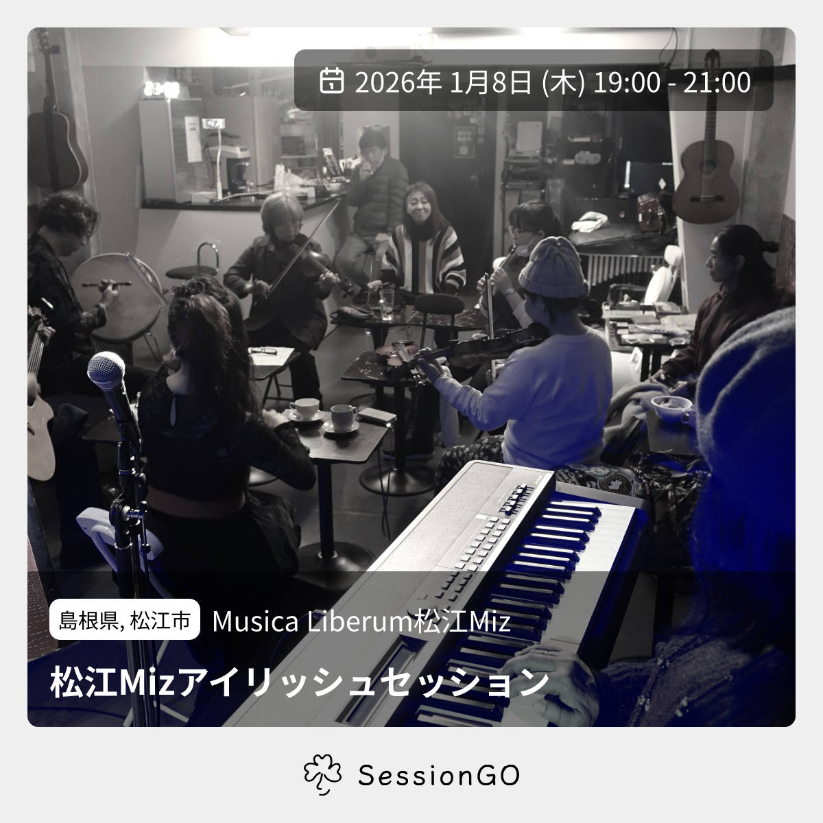 島根県, 松江市Musica Liberum松江Miz松江Mizアイリッシュセッション2026年1月8日(木)終了10:00 - 12:00島根県松江市末次本町37主催者:キョール・アガス・クラック🔰 初心者歓迎🚭 開催場所が禁煙定例アイリッシュセッションです。 どなたでも参加できるオープンセッションです。ワンオーダー以上お願いします。ギター、キーボードなど各種楽器使用可。 初めての方は当アカウントかお店に問い合わせてください。 Musica Liberum松江Miz info@yureha.com 0852-32-1551 ※今月から毎月第2木曜日に変更されました。イベント内容をコピーして新規投稿※閉店・移転などにより、正常に表示されない場合があります