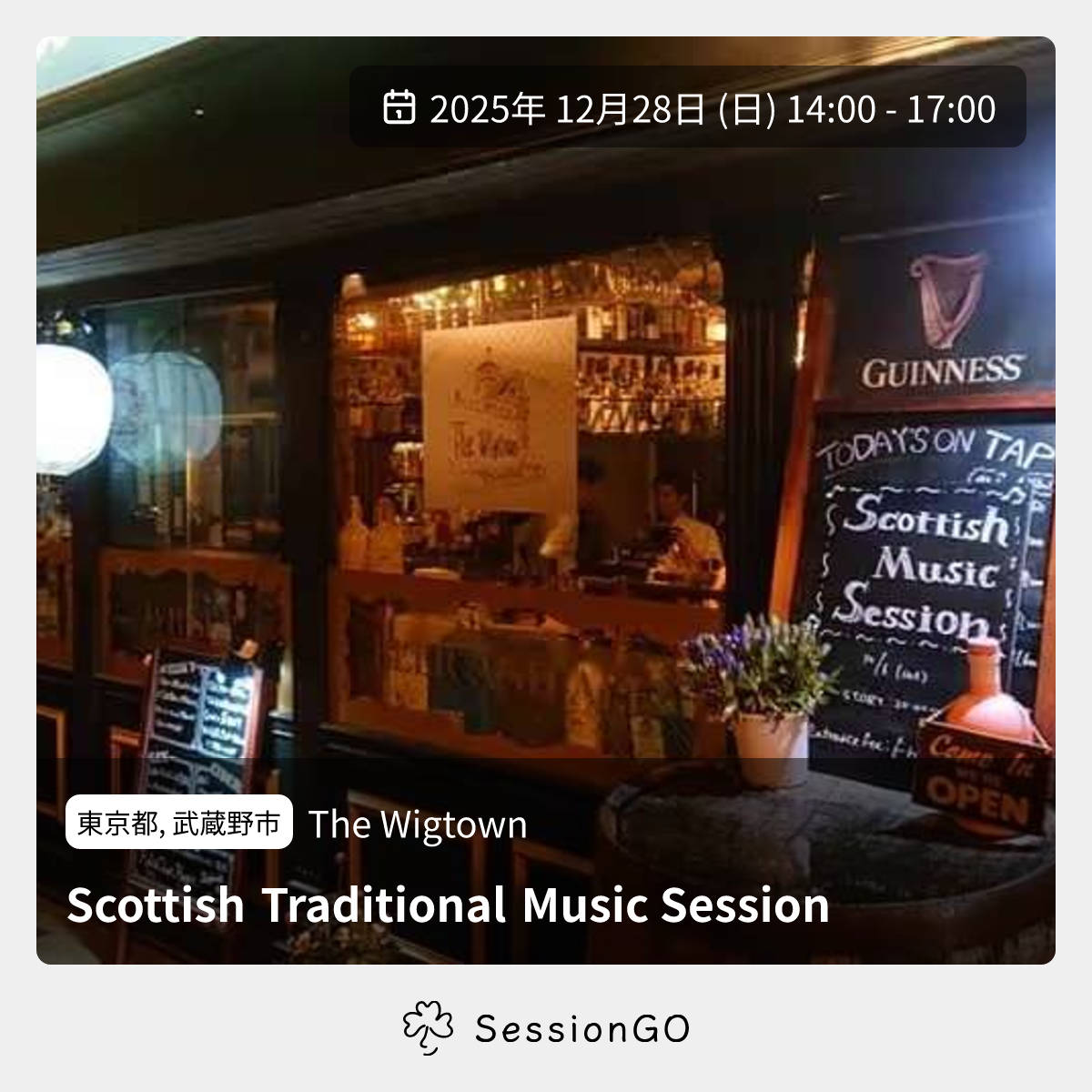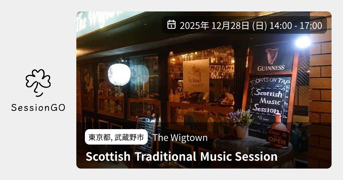 東京都, 武蔵野市The WigtownScottish Traditional Music Session2025年12月28日(日)終了5:00 - 8:00東京都武蔵野市吉祥寺南町2丁目13−4 101主催者:A.M.?🔒 クローズドセッション🚭 開催場所が禁煙コロナ前に何度か開催しておりました吉祥寺Wigtownさんでのスコティッシュtuneセッションです。 恐縮ながら今回はミュージシャン席満席のためクローズドとなりますが、 お店は一般営業中になります。リスナーサイドについてはふらりと昼飲みにお越しくださいませ。 エール、ジン、スコッチといったお酒はもちろん、ハギスはじめお料理もどれもおいしいのでぜひ。 ※ワンオペのため提供(特にフード)は多少時間かかることがあります旨ご承知くださいませ。 ↓お店の告知 Instagram https://www.instagram.com/p/DSOtyerku2_/ X(旧Twitter) https://x.com/thewigtown/status/2000057318302793744?s=20 Facebook https://www.facebook.com/share/p/1NF3QRmYsg/ セッションについての連絡先( violino0123*yahoo.co.jp ←*を@に変換 ) ※FBのprivateイベントページでtune事前共有などしています。もし、次は弾きたい、とか、tuneチェックしたいのでイベントページ参加したい、などありましたら Auld Lang Syne https://kids.kiddle.co/Image:37_Auld_Lang_Syne.png?v=/images/6/66/37_Auld_Lang_Syne.png ちなみにスコットランドでは元の旋律↓も今なおよく歌われるそう https://www.youtube.com/watch?v=yhlHsDN3M7U&t=56sイベント内容をコピーして新規投稿※閉店・移転などにより、正常に表示されない場合があります
