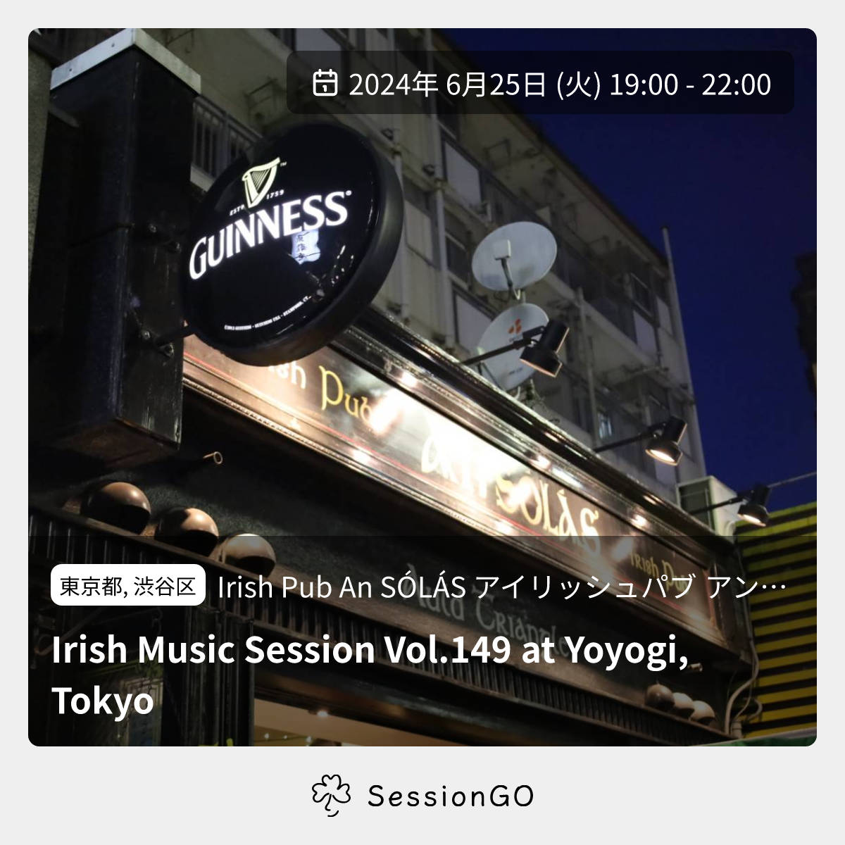 代々木のアイリッシュパブ「An SÓLÁS(アンソラス)」のセッションのご案内です。