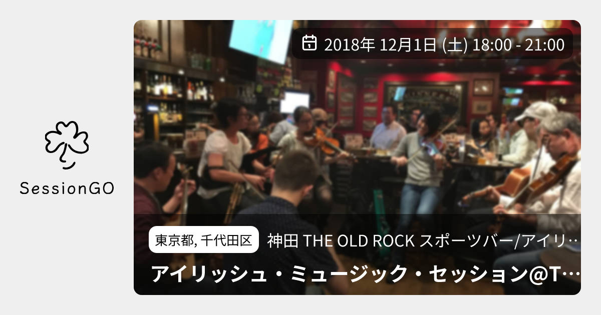 東京都, 千代田区神田 THE OLD ROCK スポーツバー/アイリッシュパブ/ギネスビールアイリッシュ・ミュージック・セッション@The Old Rock(神田)2018年12月1日(土)終了9:00 - 12:00東京都千代田区内神田1丁目15 内神田1丁目15−2主催者:豊田耕三(フルート) 、他🔰 初心者歓迎神田のアイリッシュ・パブオールドロックで月一開催されるアイリッシュ音楽のセッションです。 アイリッシュ音楽を演奏できる方はどなたでもご参加頂けます。 飲み物、食べ物は各自オーダーして下さい。 飲みに、聴きに、踊りにいらっしゃる方々も大歓迎です。 ミュージックチャージフリー。 18:00〜21:00 セッションホスト 豊田耕三(フルート) 他イベント内容をコピーして新規投稿※閉店・移転などにより、正常に表示されない場合があります