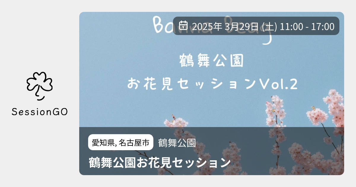 愛知県, 名古屋市鶴舞公園鶴舞公園お花見セッション2025年3月29日(土)終了2:00 - 8:00愛知県名古屋市昭和区鶴舞1丁目1−1主催者:名古屋アイリッシュ音楽サークル Banna Beag🔰 初心者歓迎🚭 開催場所が禁煙聴くだけでもOKのゆるいセッションです。 マナーを守って楽しみましょう!イベント内容をコピーして新規投稿※閉店・移転などにより、正常に表示されない場合があります