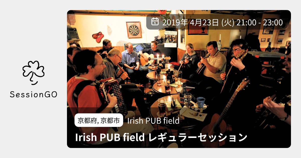 このイベントは終了していますが、同じ場所でこんなイベントも予定されています2026/3/7(土)9:00レギュラーセッション@Irish PUB field京都京都市Irish PUB fieldkyotofield.com2026/3/14(土)9:00レギュラーセッション@Irish PUB field京都京都市Irish PUB fieldkyotofield.com2026/3/21(土)9:00レギュラーセッション@Irish PUB field京都京都市Irish PUB fieldkyotofield.com2026/3/28(土)9:00レギュラーセッション@Irish PUB field京都京都市Irish PUB fieldkyotofield.com京都府, 京都市Irish PUB fieldIrish PUB field レギュラーセッション2019年4月23日(火)終了12:00 - 14:00京都府京都市中京区錦小路通東洞院西入元法然寺町683🔰 初心者歓迎😋 参加者に特別メニューありその時になってみないとどんな演奏者がやって来るかわからない、もし誰も来なければ実施されないという形の珍しい完全な自由セッションで、パブ開店当時からずっと続いているセッションです。 このセッションは、日本のアイルランド音楽の普及と発信の基地として多くのアイルランド音楽の演奏家が誕生する素地となりました。 セッション参加者はセッション時間中のドリンクが半額になります。イベント内容をコピーして新規投稿※閉店・移転などにより、正常に表示されない場合があります