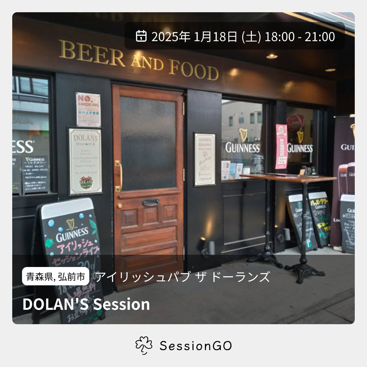 会場となるDOLAN'Sさんはアイルランドのパブで勤務経験がある店主さんがいる、居心地がよくてお料理がおいしい素敵なパブです。Session共々お楽しみ頂けたら嬉しいです。
