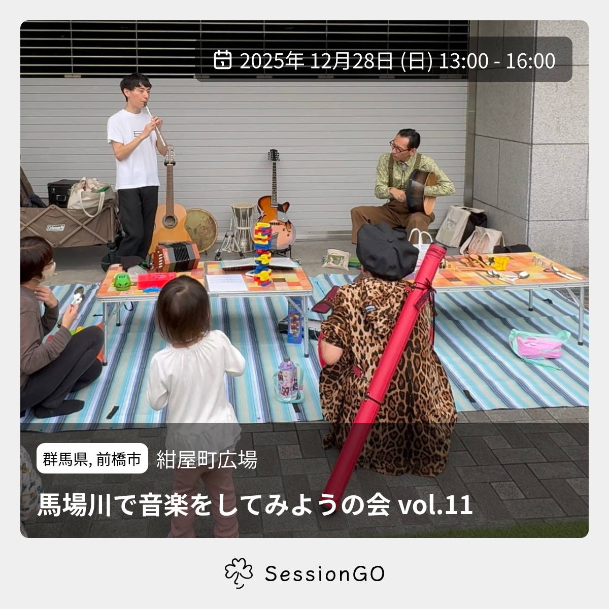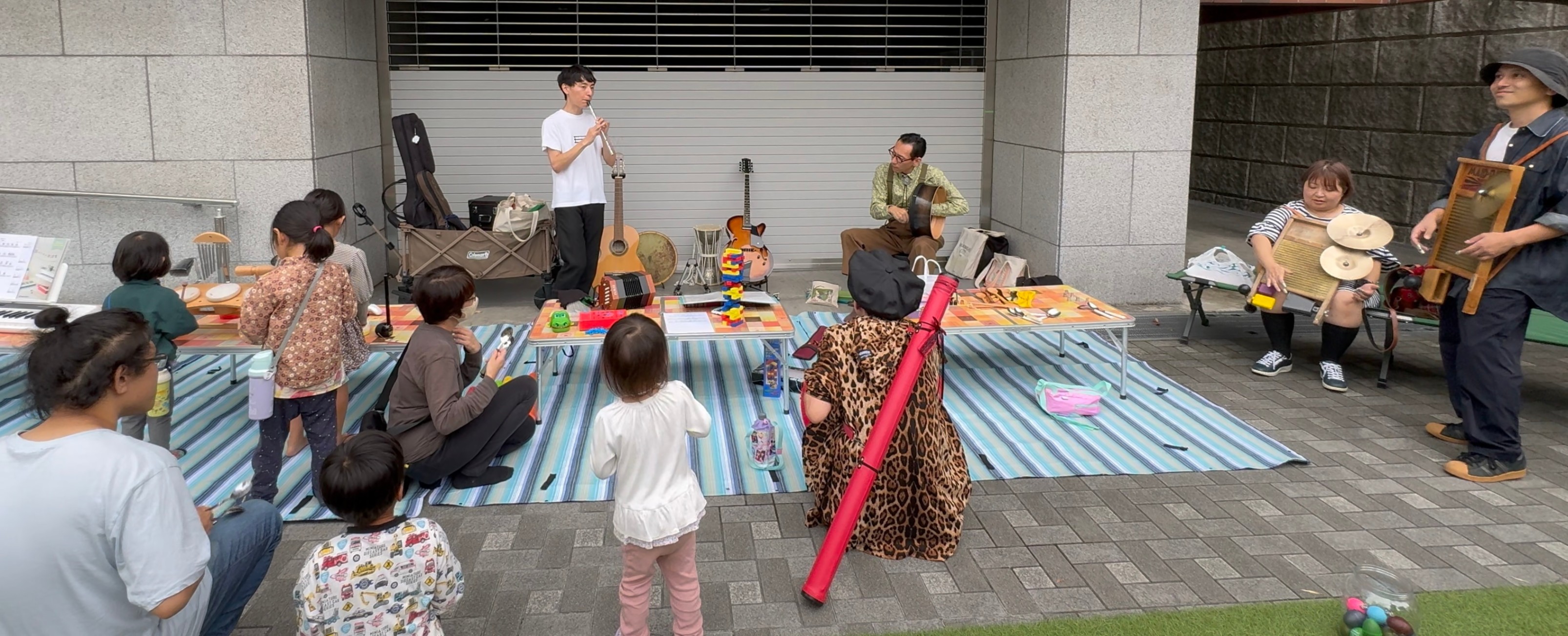 この会では、通りがかる人たちに楽器に触れて遊んでもらい、あわよくばセッションが始まることを期待しています。