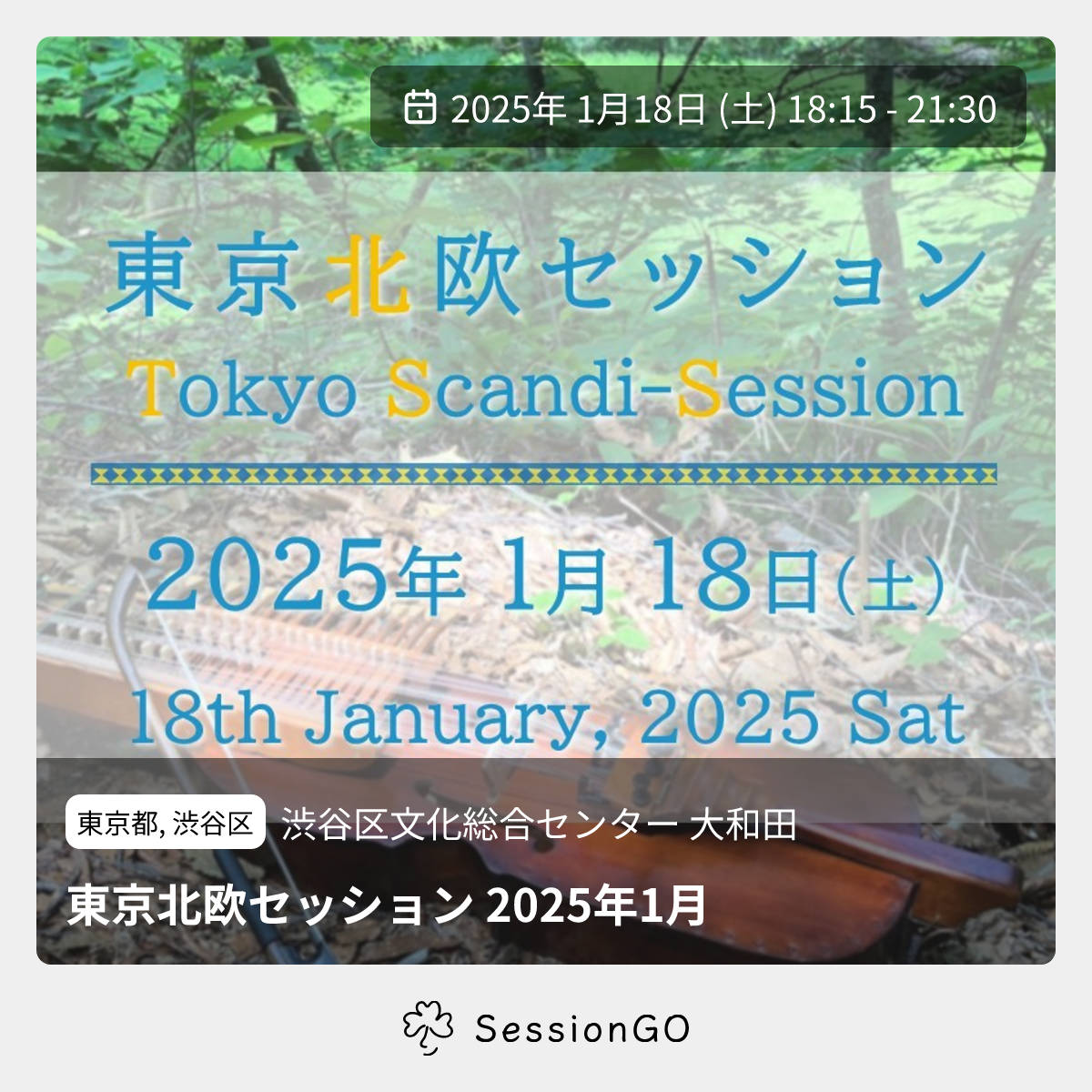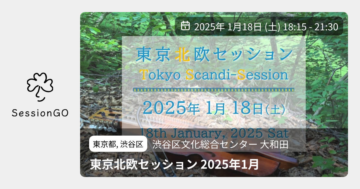 東京都, 渋谷区渋谷区文化総合センター 大和田東京北欧セッション 2025年1月2025年1月18日(土)終了9:15 - 12:30東京都渋谷区桜丘町23−21主催者:東京北欧セッション🔰 初心者歓迎💪 練習会💰 参加・チャージ料金が必要🚭 開催場所が禁煙🧑🏫 ワークショップ2025年、新年の東京北欧セッションは1月18日(土)に開催予定です! 場所:渋谷区文化総合センター大和田 4F・練習室4 各線「渋谷駅」 徒歩約5分 参加費:1,000円(学生500円) 予約不要、途中入退場自由 お気軽にいらしてください!イベント内容をコピーして新規投稿※閉店・移転などにより、正常に表示されない場合があります