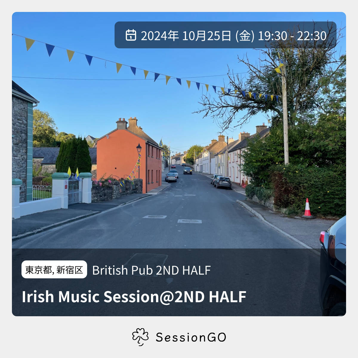 高田馬場駅から歩いてすぐのBritish Pub『2ND HALF』でアイリッシュミュージックセッションを開催します!どんなレベルの方もご参加いただけます。楽器を演奏される方も音楽を楽しまれる方もお気軽にお越しください。