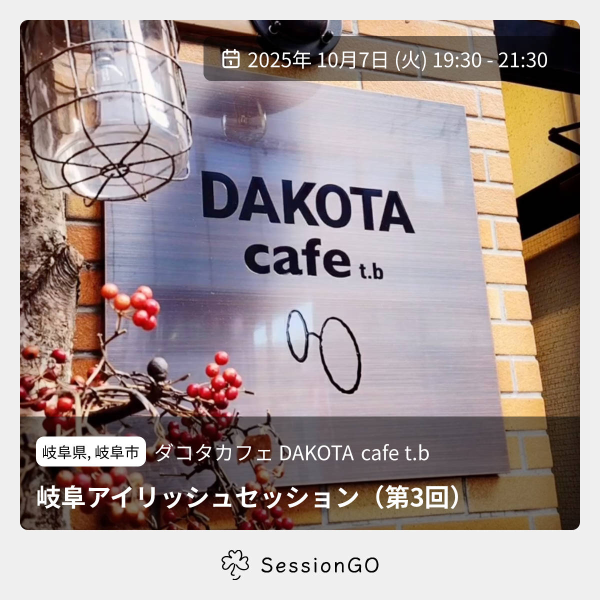 岐阜駅近くのカフェ DAKOTA cafe t.b にて、月に一度開催しているアイルランドの伝統音楽を楽しむオープンセッションです。