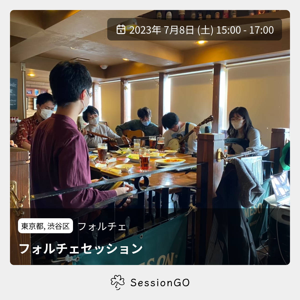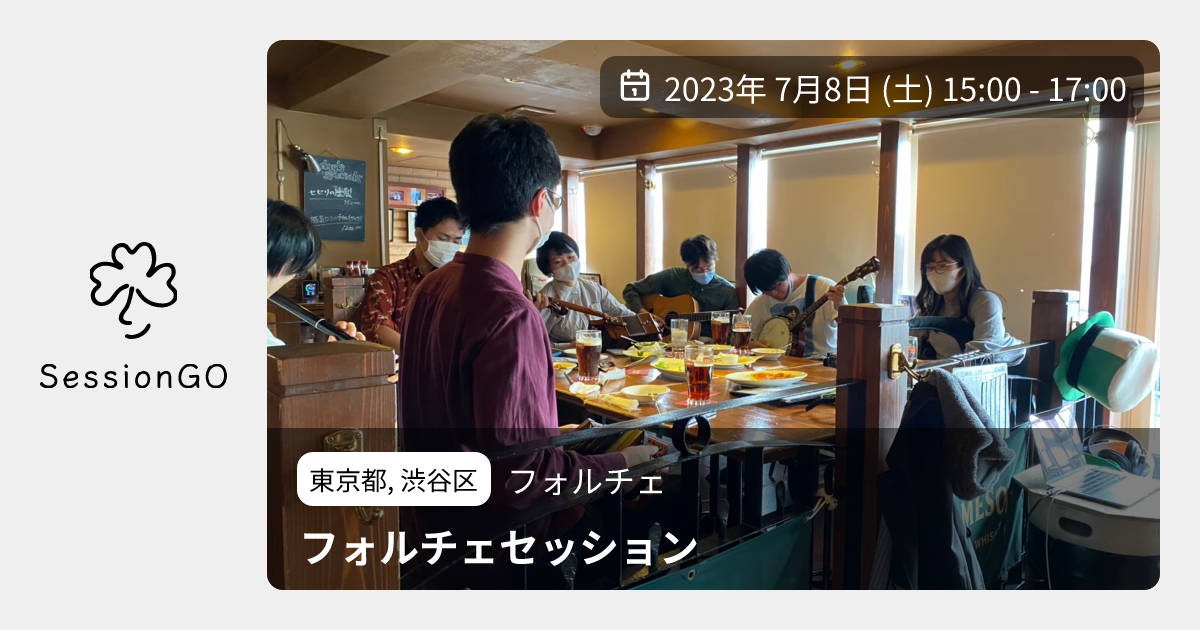 東京都, 渋谷区フォルチェフォルチェセッション2023年7月8日(土)終了6:00 - 8:00東京都渋谷区道玄坂1丁目5主催者:福島/内藤/大越/中林🔰 初心者歓迎https://facebook.com/events/s/%E6%B8%8B%E8%B0%B7%E3%83%95%E3%82%A9%E3%83%AB%E3%83%81%E3%82%A7%E3%82%BB%E3%83%83%E3%82%B7%E3%83%A7%E3%83%B3/1389902981580731/ アイリッシュミュージックセッションを開催します!!! どなたでも歓迎ですが、演奏に参加される方はツードリンク以上のオーダーをお願いします🙇♀️ また、席にも限り(最大12人ほど)がありますので、譲り合ってのご参加をお願いする場合がございます。 聴きに来ていただくのももちろん大歓迎です!イベント内容をコピーして新規投稿※閉店・移転などにより、正常に表示されない場合があります