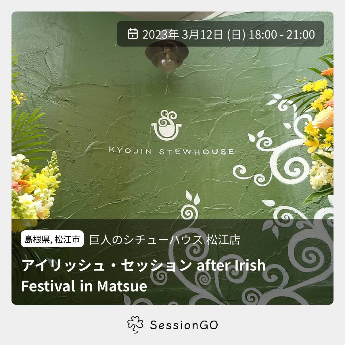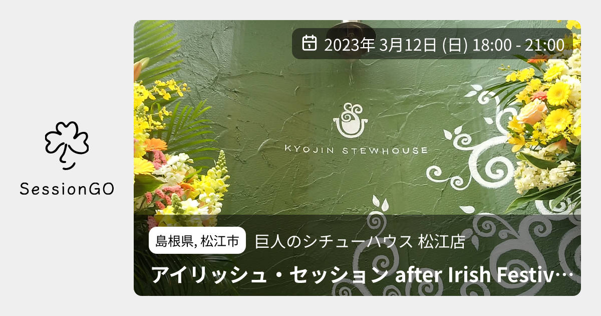 アイリッシュ・フェスティバル in Matsue終了後に巨人のシチューハウスに集まってセッションしましょう!