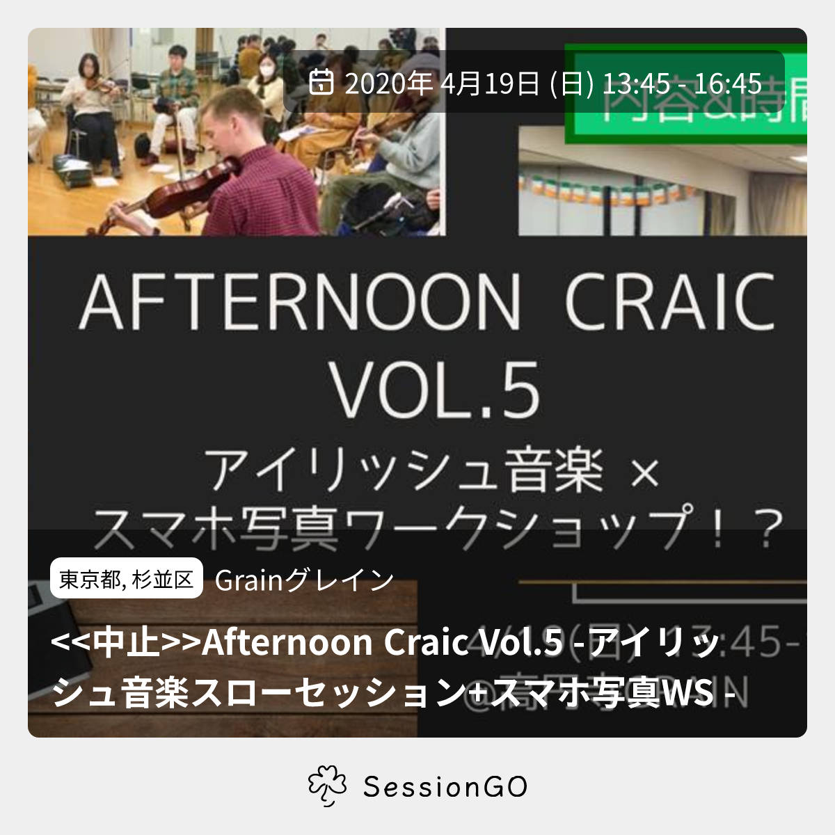 <<中止>>Afternoon Craic Vol.5 -アイリッシュ音楽スローセッション+スマホ写真WS -