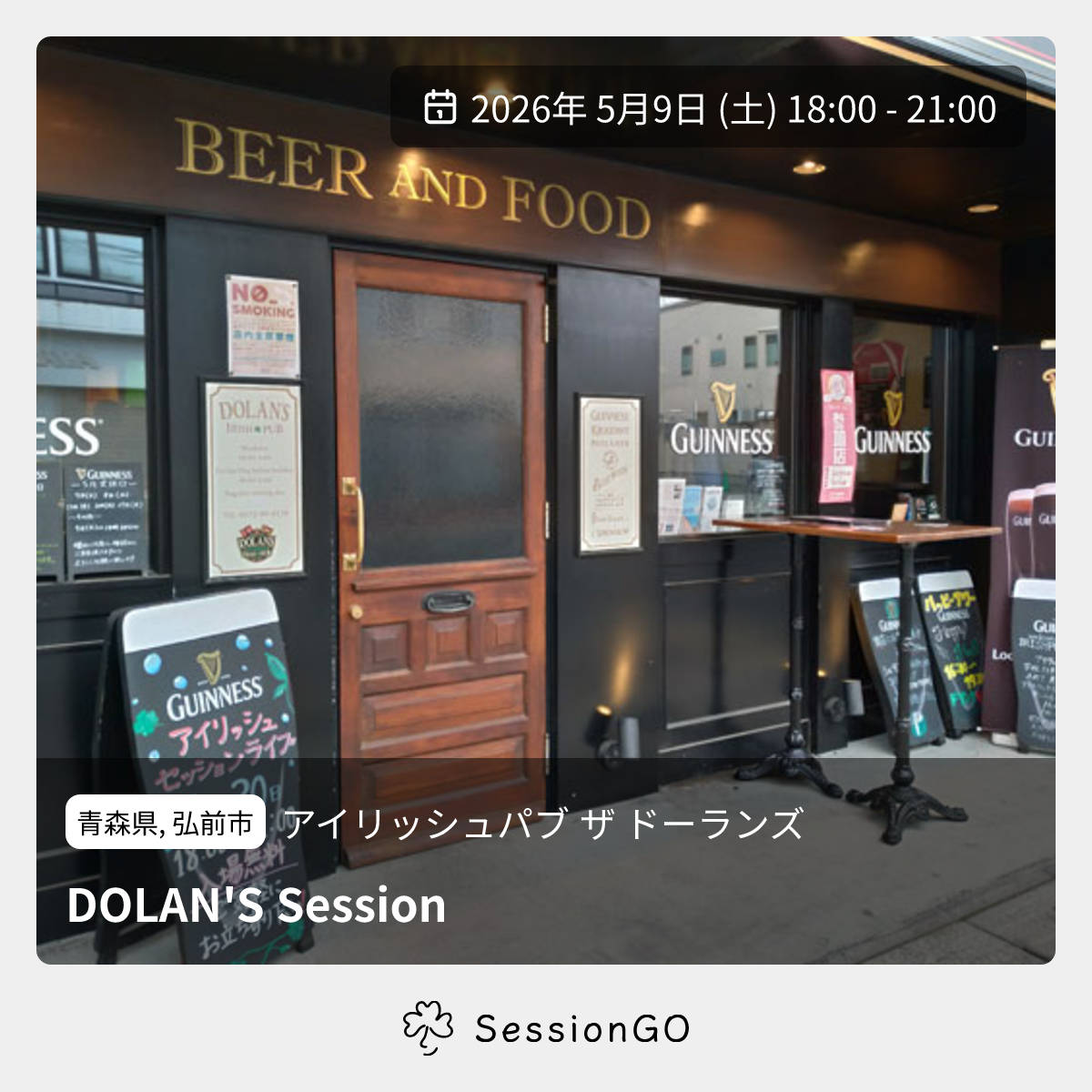会場となるDOLAN'Sさんはアイルランドのパブで勤務経験がある店主さんがいる、居心地がよくてお料理がおいしい素敵なパブです。Session共々お楽しみ頂けたら嬉しいです。お待ちしております。 ※閉店・移転などにより、正常に表示されない場合があります