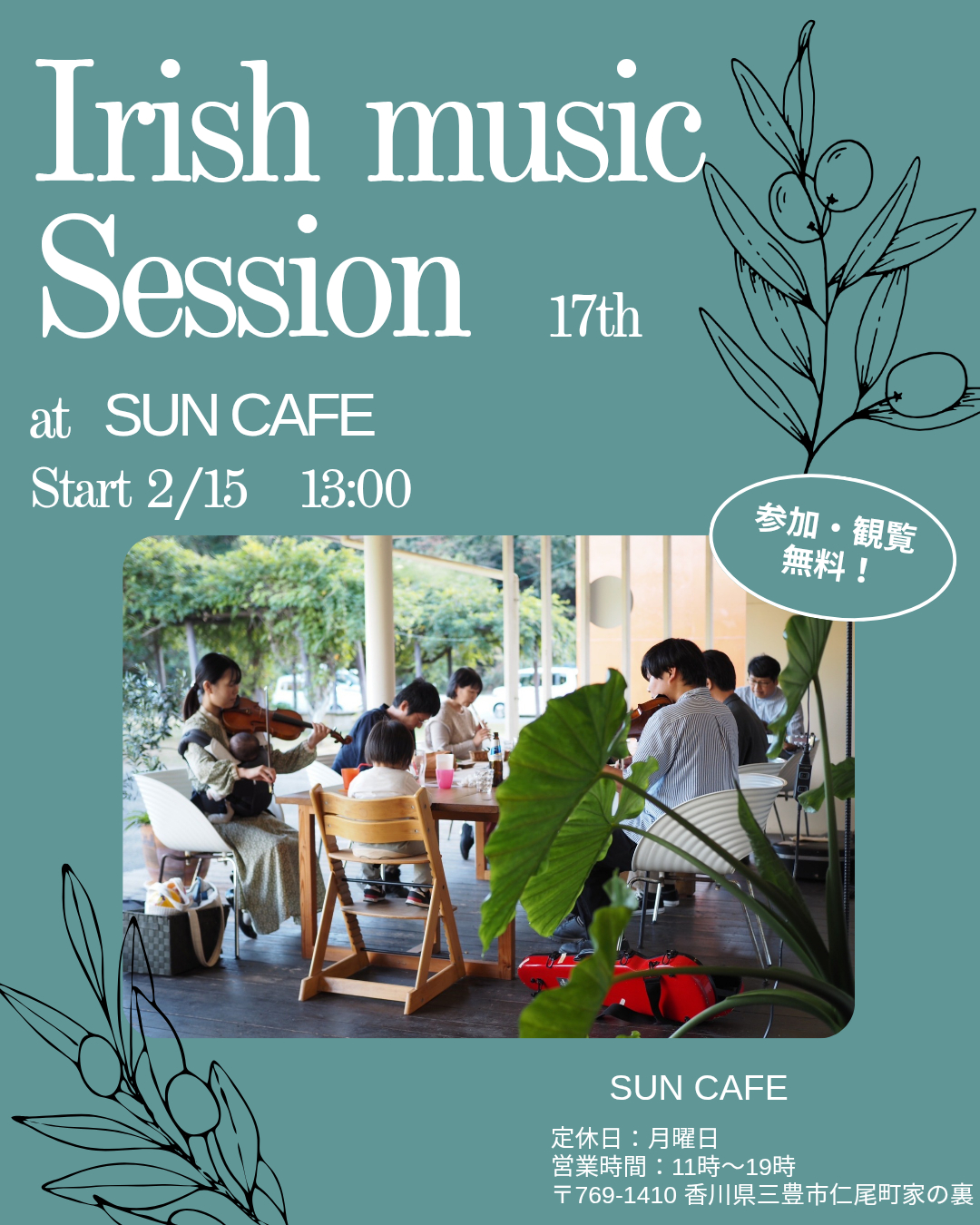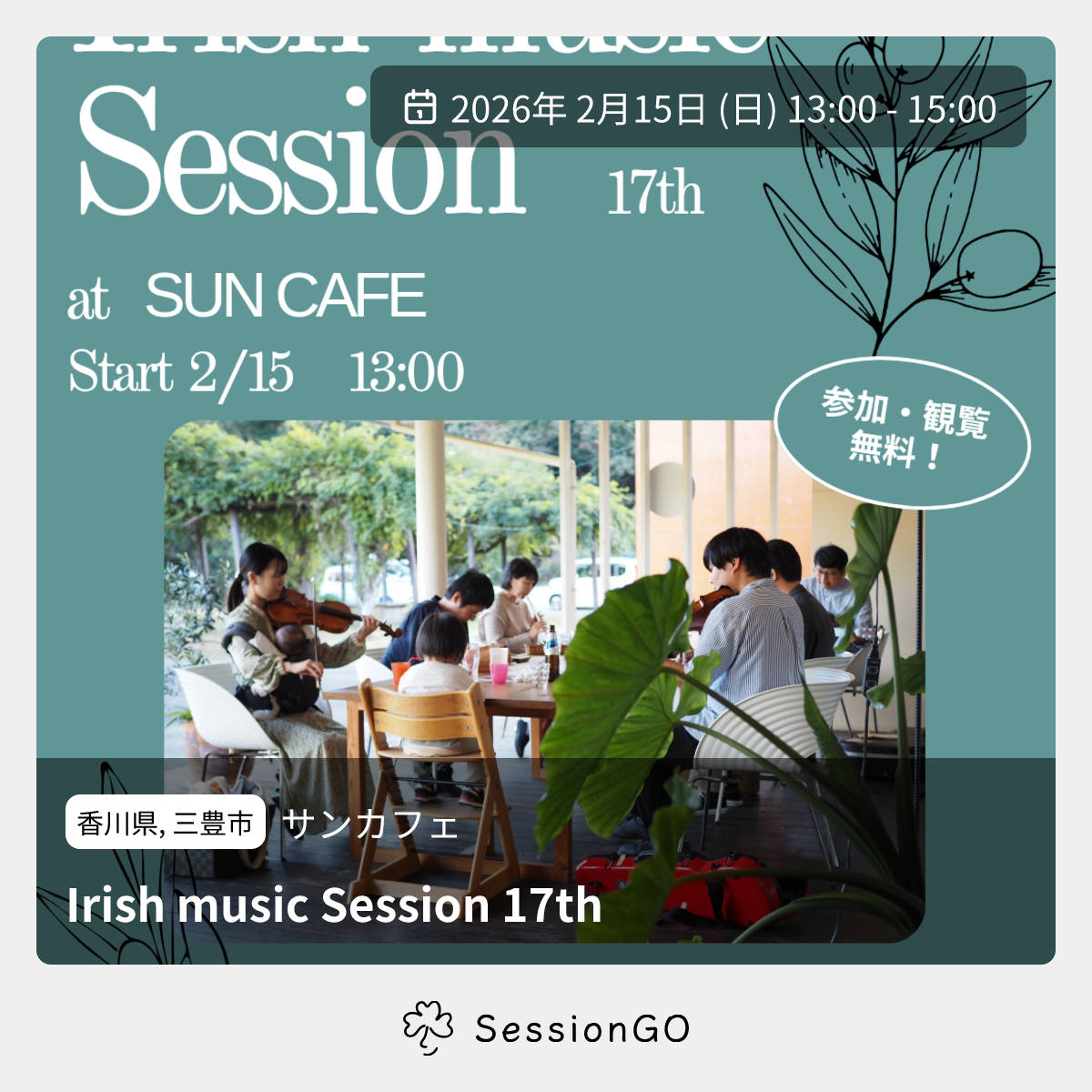 香川県, 三豊市サンカフェIrish music Session 17th2026年2月15日(日)終了4:00 - 6:00香川県三豊市仁尾町家の浦326主催者:きっか🔰 初心者歓迎☘️ Irish music Session vol.17 ☘️ 木漏れ日の中、コーヒーと一緒にアイリッシュ音楽を。 フィドルやフルートの音が カフェにゆるやかに溶け込む午後のセッションです。 演奏する人も、聴くだけの人も大歓迎。 📅 2/15(日)13:00〜 📍 SUN CAFE(香川県三豊市) 🎻 参加・観覧無料 音楽のある時間を、気軽にどうぞ🌿イベント内容をコピーして新規投稿※閉店・移転などにより、正常に表示されない場合があります